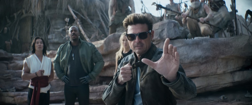 As Liu Kang, Sonya Blade (Jessica McNamee) and Jax (Mehcad Brooks) watch, they joke, “You’re going to die.” At the beginning of the duel, Johnny is clearly overpowered, until he is knocked down and loses his sunglasses. Sonya encourages him by saying, “You are an actor, so act.”